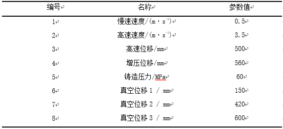 圖6:帶排氣塊的模具設計 2.4普通排氣工藝參數的選擇 普通排氣塊通過多次試制,得出了壓鑄工藝使用的最優參數,見表2;實際的沖頭速度也設置為3.5 m/s,鑄造壓力也為60MPa。