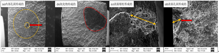 圖7:多種類型形成的裂紋源 由于鋁合金在熔煉過程中容易吸氫和氧化,表面的氧化膜容易卷入鋁液內部,導致在鑄造過程中很容易出現鑄造缺陷。常見的鑄造缺陷有氧化夾雜物、孔洞等。孔洞分為兩種:氣孔和縮孔,由于縮孔形狀不規則,引起的微觀應力集中程度更大,對疲勞壽命的影響更為顯著。鑄造件內部的氧化夾雜物與基體結合不緊密,割裂了基體的連續性,而且與基體間彈性模量和熱收縮系數不匹配。在交變應力作用下,這些缺陷起到了缺口的作用,在其周圍產生很大的局部應力集中,成為裂紋萌生的起點。這些缺陷的存在大大降低了疲勞裂紋的萌生時間,導致疲勞壽命的大幅降低,各個試樣中不確定的鑄造缺陷導致疲勞壽命分散性的增加。苗國磊等研究了粉末冶金鎳基高溫合金FGH96高溫疲勞壽命分散性特征,得到了相似的結論,認為導致表面萌生裂紋的夾雜是最差疲勞壽命的主導因素,使得疲勞壽命分散性較大。 3、結論 (1)通過試驗測試了AlSi9Cu3鑄造鋁合金轉向器材料的高周疲勞性能,根據試驗結果擬合出了P-S-N曲線,99%可靠度下疲勞壽命一百萬次時所對應的疲勞強度為120.7 MPa,試驗結果符合要求。 (2)造成試樣疲勞破壞的主要原因是孔洞、氧化夾雜物等鑄造缺陷,缺陷的存在大大較少了裂紋源萌生時間,導致疲勞壽命的大幅降低。 (3)鑄造缺陷引起疲勞壽命分散性的增加,缺陷的類型、大小、位置都會對試樣壽命和分散性產生很大的影響。在高應力水平下,缺陷對壽命分散性的影響較小;在低應力水平下,缺陷對壽命分散性的影響最大。 作者:戴浩杰 趙禮輝 翁碩 上海理工大學機械工程學院 機械工業汽車機械零部件強度與可靠性評價重點實驗室 |