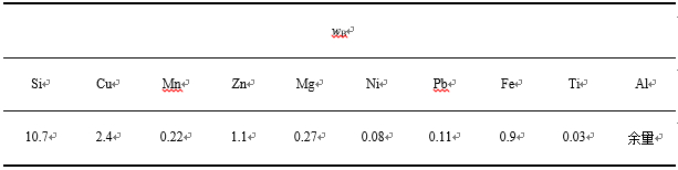 表1:鑄造鋁合金AlSi9Cu3的化學成分 % 按照GB/T228-2002,通過Zwick電子萬能材料試驗機對試樣進行靜態拉伸試驗,獲得了材料的基本力學性能(見表2)。
