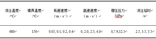 圖2:鎂合金壓鑄件橫截面典型顯微組織 2、壓鑄工藝參數(shù)對缺陷帶組織形態(tài)的影響 壓鑄試驗在TOYO-BD-350V5壓鑄機上進行,表1為壓鑄過程中所采用的試驗參數(shù),通過對比研究了不同低速速度、高速速度、增壓壓力、澆注延時等對壓鑄鎂合金缺陷帶組織形貌與分布特征的影響。