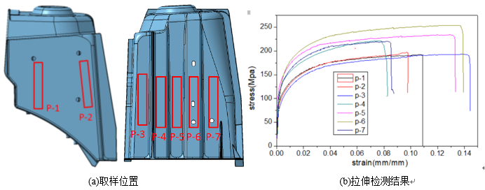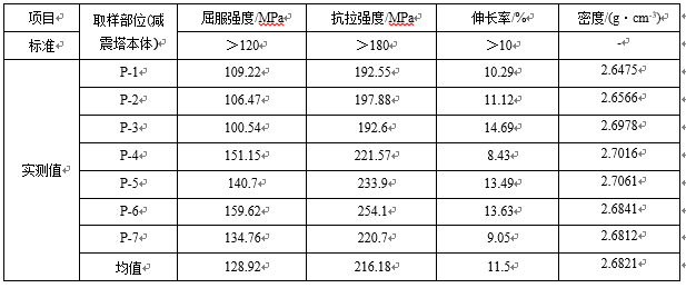 圖4:減震塔取樣位置區(qū)域及拉伸檢測(cè)結(jié)果