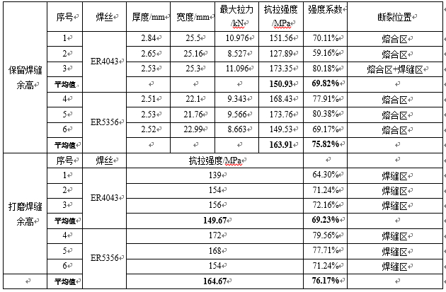 表4:真空壓鑄鋁合金減震塔(改善后)焊接力學(xué)性能