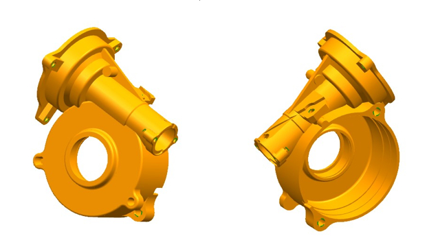 圖13:實(shí)際生產(chǎn)鑄件 3、結(jié)論 根據(jù)水泵殼體結(jié)構(gòu)要求,設(shè)計(jì)合理壓鑄方案,將壓鑄工藝與數(shù)值模擬技術(shù)相結(jié)合,利用FLOW-3D軟件對(duì)壓鑄工藝進(jìn)行數(shù)值模擬,分析卷氣及缺陷產(chǎn)生原因并進(jìn)行工藝優(yōu)化,增加多股內(nèi)澆口,增設(shè)溢流槽和排氣槽,模擬顯示無(wú)缺陷。進(jìn)行生產(chǎn)驗(yàn)證后得到符合實(shí)際生產(chǎn)鑄件。 |