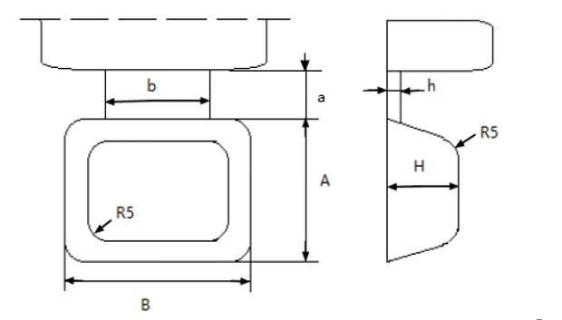 圖4:溢流槽形狀 其中,b、a、h、A分別為溢流口的寬度,長(zhǎng)度、厚度,長(zhǎng)度。B、H分別為溢流槽的寬度以及厚度。 選用一個(gè)此形狀溢流槽具體尺寸為:A=16 mm,a=6 mm,H=7 mm,h=1mm,b=12 mm,B=20 mm;考慮到零件特點(diǎn),在零件中間增設(shè)一個(gè)圓形溢流槽。圓形溢流槽尺寸:R=15 mm,H=12 mm,b=12 mm,a=6 mm,h=1 mm。圖5為原始工藝方案。