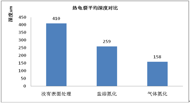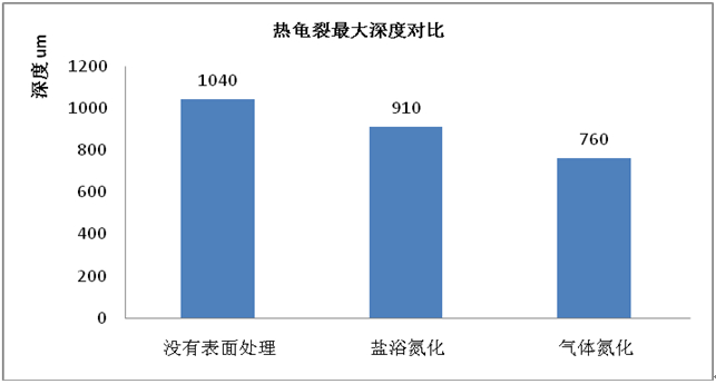 圖4:3種表面狀態的龜裂紋最大深度圖