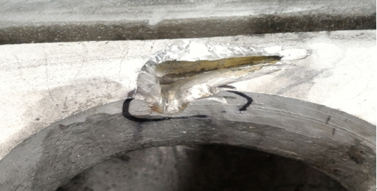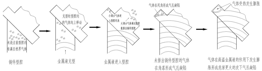 表3:鑄件力學性能檢測結果 3、基座缺陷原因分析 金屬液進入型腔,空氣被加熱,出現向上排出鑄型的現象,很小的一部分空氣進入了型腔的死角,在金屬熔液熱力作用下膨脹長大,形成危害性較大的氣孔缺陷,見圖7。