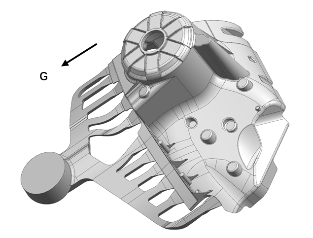 ![]() 摘要:越來越多的汽車結構件采用鋁合金材質(zhì),以減輕重量,但其復雜的結構及高受力要求對壓鑄工藝提出了挑戰(zhàn)。本文根據(jù)汽車用減震塔的結構特征,設計了壓鑄工藝,然后利用數(shù)值模擬方法模擬了金屬液的流動及充型過程。結果表明,鋁液在減震塔型腔中充型較為平穩(wěn),前端含氧化夾雜、卷氣量大的金屬液全部進入溢流槽中,避免了鑄件內(nèi)部因卷氣而產(chǎn)生的缺陷。另外,通過采用局部激冷方法等工藝措施,解決了局部厚大部位的縮孔缺陷,最終獲得質(zhì)量良好的鋁合金減震塔壓鑄件。 目前,壓鑄鋁合金零件已經(jīng)被廣泛應用到汽車、航空航天和電子工業(yè)等領域中。用鋁合金零件代替鋼制零部件能夠?qū)崿F(xiàn)40%~50%的減重,這有利于降低能耗,是實現(xiàn)節(jié)能減排的重要途徑。因此,越來越多的汽車結構件采用鋁合金材質(zhì),以減輕重量,但其復雜的結構及高受力要求對壓鑄工藝提出了挑戰(zhàn)。汽車的許多結構件多為薄壁殼體類零件。研究表明,當鑄件的壁厚小于4mm時,液態(tài)金屬表面張力引起的拉普拉斯力會嚴重影響充型液體的流動狀態(tài),同時粘滯力的作用也凸顯,這會導致薄壁零件在模具型腔中充型困難。壓鑄技術是使金屬液在壓力下充填型腔,這不僅能有效解決充型的難題,而且能使金屬液快速凝固,細化合金組織,得到強度更高的合金零件。 由于這些殼體零件一般形狀比較復雜,局部壁厚不均勻,因此金屬在模具型腔中的流動過程也較為復雜,并且由于不同鑄型材料、金屬材料的性質(zhì)不同,也會導致對鑄件質(zhì)量難以把握。如今,隨著計算機技術的發(fā)展,數(shù)值模擬軟件能越來越準確地反映金屬液在壓鑄模具的流動過程,并且能夠準確預測鑄件缺陷產(chǎn)生部位。因此,首先利用數(shù)值模擬軟件預先進行充型及凝固過程的模擬,然后根據(jù)模擬結果設計及優(yōu)化壓鑄工藝,分析零件品質(zhì),是一種高效且節(jié)省成本的方法。 本文涉及的汽車結構件減震塔,屬于大型、復雜鋁合金壓鑄件。運用FLOW-3D數(shù)值模擬軟件進行模擬,指導設計該零件的壓鑄工藝方案,驗證了零件制造工藝的合理性和可行性。根據(jù)模擬結果對工藝方案進行改進,最終獲得高質(zhì)量的壓鑄件,提高了零件的生產(chǎn)效率,降低生產(chǎn)成本。 1、減震塔結構分析