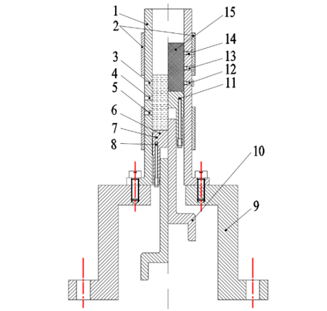 式中,Tp和Ts分別為沖頭和壓室上相應(yīng)節(jié)點(diǎn)的溫度;Dp和Ds分別為沖頭和壓室上相應(yīng)節(jié)點(diǎn)的變形量;此處Rg取負(fù)值是為了優(yōu)化的一致性。 2、物理試驗(yàn)與有限元仿真的對(duì)比驗(yàn)證 2.1 物理試驗(yàn)平臺(tái)搭建 為驗(yàn)證有限元仿真的有效性,搭建了物理試驗(yàn)平臺(tái),見(jiàn)圖2。該試驗(yàn)平臺(tái)的參數(shù)與仿真設(shè)定的初值一致。該試驗(yàn)平臺(tái)包括壓室、沖頭、壓射桿、底座等組件以及K型熱電偶、千分尺測(cè)距儀、應(yīng)變片和預(yù)熱圈等測(cè)試部件。壓射機(jī)構(gòu)預(yù)熱到110 ℃時(shí),將達(dá)到720 ℃的金屬液澆注入壓室,通過(guò)推桿與壓力機(jī)上的螺紋桿聯(lián)接,實(shí)現(xiàn)沖頭在壓室內(nèi)的垂直移動(dòng)。
