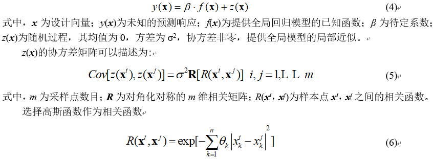 圖4:不同情況下的響應(yīng)圖 3、基于溫差和間隙率的多目標(biāo) Kriging元模型的構(gòu)建 3.1 Kriging元模型理論 Kriging元模型是一種具有統(tǒng)計(jì)性的近似技術(shù),兼具全局近似和局部最優(yōu)的優(yōu)勢(shì),被不斷應(yīng)用到各個(gè)領(lǐng)域,現(xiàn)已衍生出多種Kriging方法。普通Kriging模型通常被描述為一個(gè)多項(xiàng)式函數(shù)和一個(gè)隨機(jī)分布函數(shù)的和: