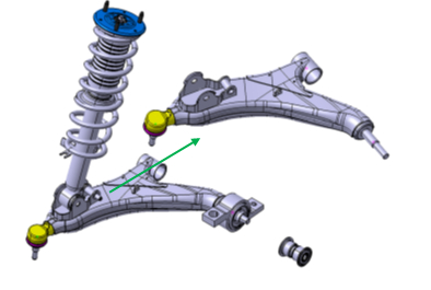圖2:鋁合金控制臂的概念設計方案 圖 2中1處,將控制臂改為鋁合金鑄件后,球頭組件與控制臂的連接方式將由原有的焊接方式改為螺栓連接。為滿足更改后的連接方式,球頭鍛件的結構必須重新進行設計,并通過機械加工完成樣件制作。只允許更改連接部分與球頭相關的部件包括軸,防塵、球碗、卡環、球頭銷,夾子和球套結構則不允許更改。 為保證鑄件的結構完整性,鑄造工藝性能以及鑄件的整體性能,確認將原有沖焊的減震器支座分為兩體設計。減震器主支座改為鋁合金設計,并與控制臂主體完成集成設計。減震器副支座仍然為沖焊結構,在通過對原有部件切割的基礎上增加底座,通過焊接的方式形成組件,組件通過螺栓連接的方式與鋁合金控制臂連接,組件的結構示意見圖 2中2處。在鋁合金控制臂上要設計副支座的安裝限位,保證安裝到位。 圖 2中3處在原有設計中所有部件均為鋼制部件,更改為鋁合金后,軸部位材料為鋁合金,與之配合的是鋼制部件,在通常情況下鋁合金部件不能夠與其發生直接的摩擦配合。考慮有兩種解決方案,其一通常是采用增加鋼制墊片的方式解決鋁制部件與鋼制部件的配合問題,在增加鋼制墊片后,原有設計中軸的尺寸將發生改變,需要重新設計;其二是借用原有的鋼制部件,重新設計連接部分結構,通過螺栓連接實現部件的裝配。 2.2 產品的設計方案 圖 3鋁合金控制臂的設計方案。基于原有沖焊部件設計,無法對原有周邊的裝配環境進行更改,必須仔細考慮原有部件的結構與裝配。總體設計方案是采用集成設計“H”型的鋁合金擠壓控制臂取代原有的上板,下板,連接上板,連接下板,襯套套管和減震器支架形成一個整體控制臂。
