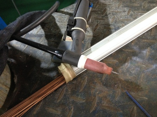 圖1:定模芯 1.1 燒蝕 在橫澆道與澆口套相鄰處產(chǎn)生2處約1 mm深的燒蝕,在模芯的外凸邊緣、內(nèi)凹根部產(chǎn)生12處燒蝕,燒蝕使得模具體積減小,必須把燒掉的部分補上,才能得到尺寸合格的壓鑄件。發(fā)生燒蝕現(xiàn)象的主要原因是大約670 ℃的鋁液在高壓下反復(fù)高速沖刷模具,在模具的邊角處由于熱集中,溫度較高,長時間后鋼料被燒掉。 1.2 裂紋 內(nèi)澆道正對的模具成型面上產(chǎn)生了細小的網(wǎng)狀裂紋,這是因為金屬液強力沖擊產(chǎn)生較大的壓應(yīng)力,同時高溫的模具開模后噴刷涂料受到激冷,冷熱交替作用下產(chǎn)生熱應(yīng)力,在復(fù)合內(nèi)應(yīng)力的作用下逐漸產(chǎn)生小裂紋。隨著時間延長越來越大,當裂紋大到一定程度時,模具可能發(fā)生斷裂。 1.3 粘鋁 內(nèi)澆道根部有1處粘鋁,高溫高壓的鋁液沿著裂紋進入鋼材基體中,由于鐵、鋁之間在高溫下親和力較大,從而粘接在一起。 1.4 設(shè)計變更 生產(chǎn)中橫澆道末端處制品有時出現(xiàn)澆不足的現(xiàn)象,原因是靠近直澆道的2處內(nèi)澆道尺寸偏大,導(dǎo)致此處金屬液流量大而末端內(nèi)澆道流量小,金屬液在末端處流動充滿型腔之前凝固,因此需要減小首段內(nèi)澆道尺寸。 2、修模處理過程 2.1 標記 用白色記號筆圈出燒蝕尺寸較大的部位,并在旁邊書寫“B”,表示需要修補。尺寸較小的燒蝕旁邊書寫“H”,表示此處是孔,暫時不需要修補。設(shè)計變更處用箭頭指出,書寫“設(shè)變”,需要修補。粘鋁的地方書寫“去肉”,表示需要加工去除材料。 2.2 焊接 氬弧焊是以氬氣作為保護氣體的焊接方法,熱輸入較小,對母材的熱影響小,不易出現(xiàn)裂紋、咬邊、氣孔等缺陷,焊接質(zhì)量容易得到保證。生產(chǎn)中采用9188GS型焊機,焊條選用AST0506,其成分與模具鋼H13相近,具有很好的抗回火特性和耐熱疲勞性能,見圖2。在焊接之前,需要徹底清除焊接表面的裂紋、氧化物和油污,并予以烘干。焊接預(yù)熱的目的是減少模具因焊接高溫而產(chǎn)生開裂的傾向,預(yù)熱溫度為300~400 ℃。焊接采用低熱輸入原則、高頻脈沖電流以及多次少量的熔滴,堆焊層厚度為4~5 mm。焊接后需要經(jīng)過回火才能達到所需硬度,回火溫度為680~730 ℃,應(yīng)比原回火溫度低5~10 ℃,以免降低母材硬度,同時保持適當?shù)捻g性。