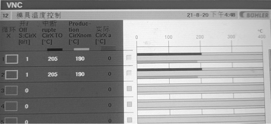 圖9 模具溫度監控系統界面 3、模具應用 經過三次上機批量生產試驗后優化出三組工藝參數進行小批量生產,壓鑄工藝參數見表2。