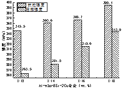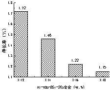 圖1 拉伸試樣尺寸圖 2、試驗結果與分析 2.1 Zn含量對合金的力學性能的影響 圖2和圖3分別為合金力學性能隨Zn含量的變化規律。可以看出,隨著Zn含量從12%提高到18%,合金的抗拉強度和屈服強度逐漸提高,抗拉強度從345.5 MPa提高到395.4 MPa,屈服強度從263.5 MPa提高到343.9 MPa,分別提高了14.4%、30.5%;伸長率隨著Zn含量的提高逐漸降低,由1.72%降低到1.15%。由此可見,合金中Zn含量的提高可以極大的提高合金的強度,但會使合金的塑性降低。