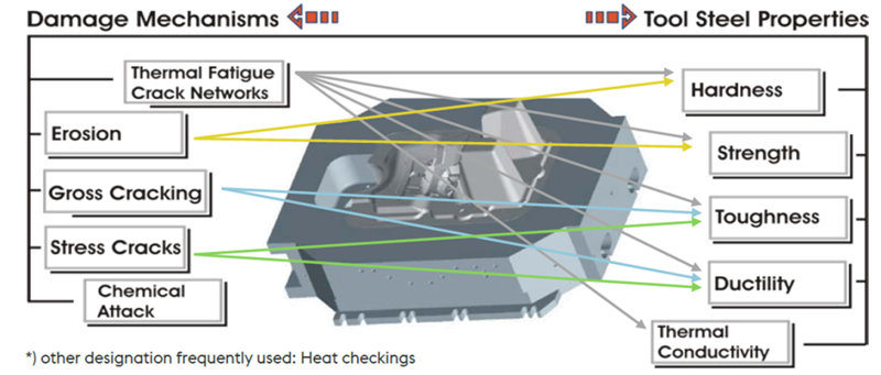 NADCA 207-2016 在模具溫度場可以實現較理想狀態的生產條件下,Bohler W403VMR 高強度模具鋼可以有效改善龜裂現象。