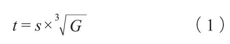 式中:t 為澆注時間,s;s為系數,一般情況下取s=3;G為型內金屬液總重,kg。 由此計算出澆注時間為 t=3.27s,為了在實際澆注中便于控制澆注時間,取澆注時間為3 s。 查閱鋁合金手冊,采用公式(2)計算直澆道截面積: