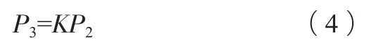 式中:μ2 為充型的阻力系數(shù),在充型階段由于型腔較為復(fù)雜,所以升液阻力要大一點(diǎn),所以本文取1.5;h2 為型腔高度,為0.195 mm。所以充型壓力P2 為11 020 Pa,根據(jù)2.2.1節(jié)充型時(shí)間為9.5 s。 增壓階段主要為充型階段結(jié)束后,需要向液面繼續(xù)增大壓力,使型腔內(nèi)液體在壓力作用下繼續(xù)補(bǔ)縮和結(jié)晶,但是壓力不能過大,增壓壓力為: