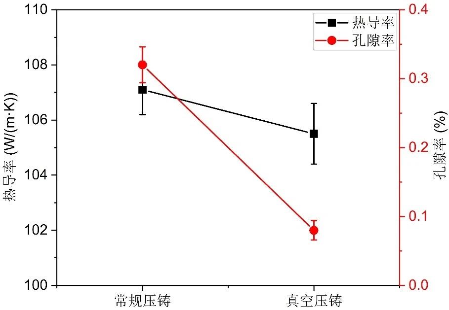 圖4 真空壓鑄與常規(guī)壓鑄的熱導率和孔隙率對比