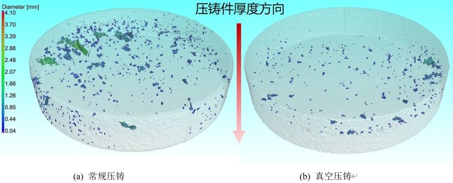 表2 使用的壓鑄工藝參數(shù) 采用XCT(phoenix V|tome|x m)對每種工藝至少3個熱導率樣品進行X射線斷層掃描,以獲取常規(guī)壓鑄和真空壓鑄的孔隙率。