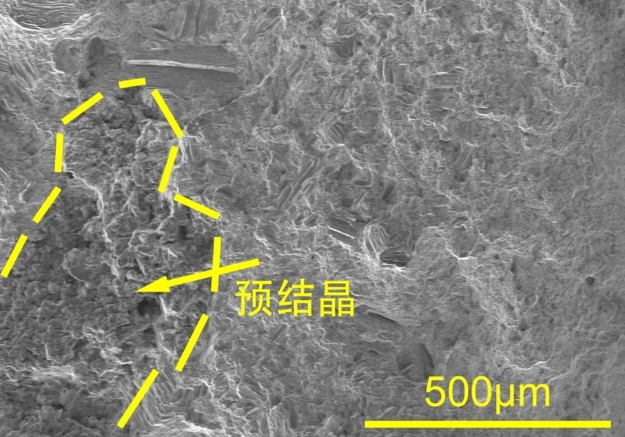 圖8 常規(guī)壓鑄與真空壓鑄在不同強化機制上的差異 真空壓鑄與常規(guī)壓鑄的伸長率差異一方面歸因于孔洞缺陷,孔洞缺陷對伸長率的影響已被報道。但是真空壓鑄相比常規(guī)壓鑄,伸長率提高了25.7%,可能還存在其他因素。有研究發(fā)現(xiàn),同一批壓鑄AE44合金,相比屈服強度和抗拉強度,伸長率的波動最大。通過原位拉伸試驗發(fā)現(xiàn),除了孔洞缺陷處容易造成應力集中,粗大的預結晶組織也是造成應力集中的主要原因。并且,伸長率較低的樣品斷口表面,含有大量的預結晶組織。在常規(guī)壓鑄宏觀斷口表面,能發(fā)現(xiàn)大量的預結晶組織,伴隨著裸露的粗大枝晶,見圖9a;而在真空壓鑄斷口表面,能觀察到的裸露枝晶極少,說明存在的預結晶分數(shù)較低,見圖9b。因此,常規(guī)壓鑄的高預結晶組織分數(shù),是導致其伸長率比真空壓鑄低的一個重要原因。