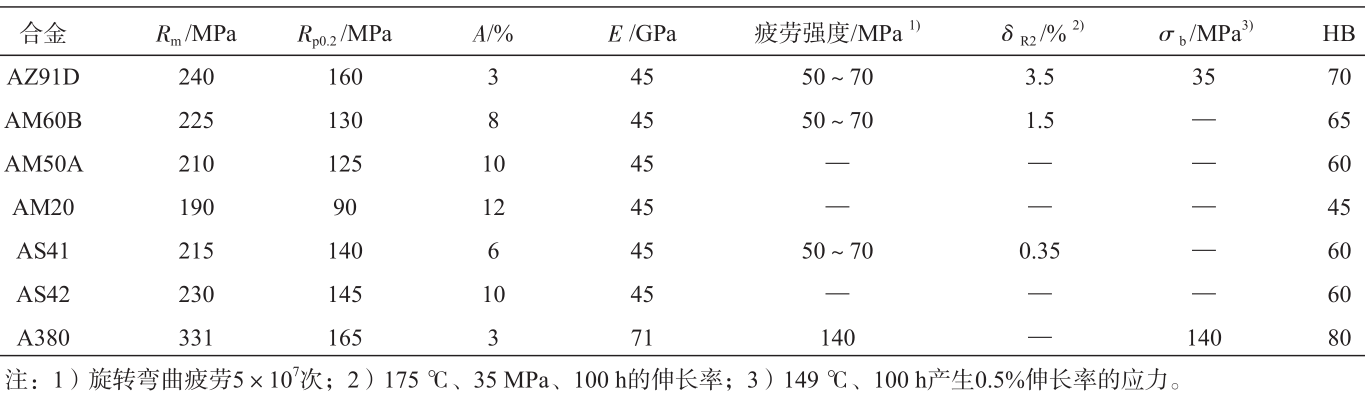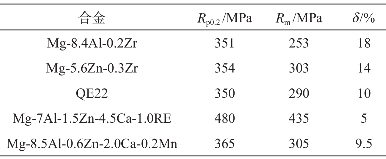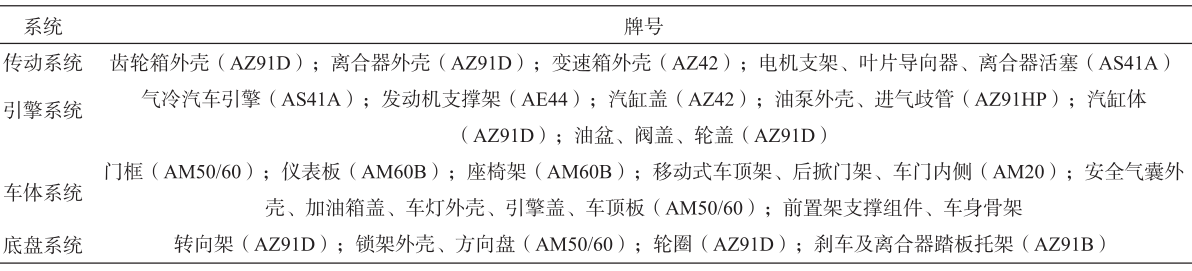 表3 汽車(chē)用典型鎂合金牌號(hào)