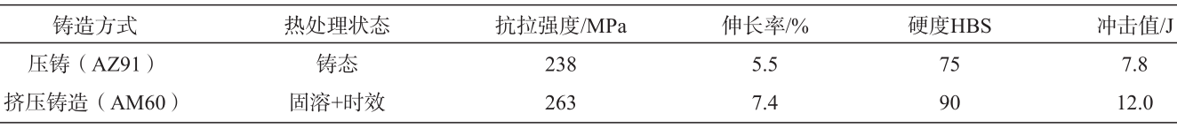 表10 鎂合金壓鑄與擠壓鑄造典型力學(xué)性能