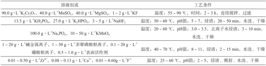 表13 鎂合金化學(xué)轉(zhuǎn)化膜工藝參數(shù)