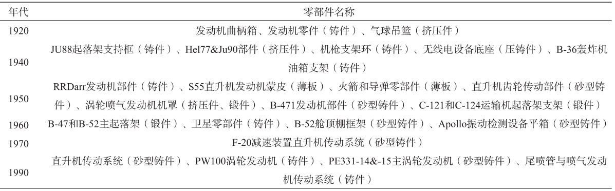 表1 國(guó)內(nèi)常用鎂合金微觀組織與材料特性 2、鎂合金典型應(yīng)用 自1929年推出AZ91,鎂合金的工業(yè)化應(yīng)用才算是得到了實(shí)質(zhì)性的進(jìn)展。自20世紀(jì)20年代鎂合金就開(kāi)始在賽車(chē)上進(jìn)行了應(yīng)用性嘗試,德國(guó)大眾甲殼蟲(chóng)汽車(chē)自1939年就開(kāi)始采用壓鑄鎂合金曲軸箱,截止到1980年共生產(chǎn)了1 900萬(wàn)輛,鎂合金制品總用量高達(dá)38萬(wàn)噸。汽車(chē)領(lǐng)域鎂合金主要用于制造殼體、電力系統(tǒng)、動(dòng)力系統(tǒng)等部件,減重效果見(jiàn)表2。汽車(chē)用鎂合金的典型服役部件與材料牌號(hào)見(jiàn)表3,表4所示為鎂合金在航空航天領(lǐng)域的應(yīng)用。