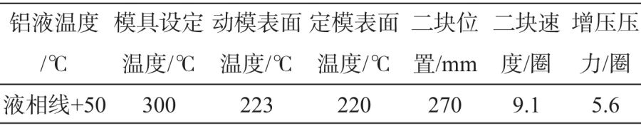 表4 壓鑄機(jī)主要工藝參數(shù)