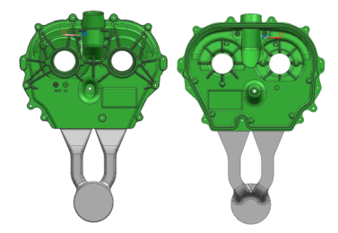 圖9 實(shí)際產(chǎn)品圖 兩板模結(jié)構(gòu)設(shè)計(jì)成熟, 機(jī)構(gòu)穩(wěn)定, 出品率高, 在實(shí)際生產(chǎn)中應(yīng)用廣泛。三板模主澆道提前分離結(jié)構(gòu)優(yōu)點(diǎn)是適用于各種圓形餅狀類產(chǎn)品, 只是結(jié)構(gòu)或樣式可能不同, 需根據(jù)實(shí)際情況設(shè)計(jì), 該應(yīng)用打破了常規(guī)壓鑄方案進(jìn)澆的思路, 大大提高了壓鑄工藝的適用范圍。