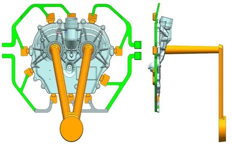 圖5 雙中心進(jìn)澆三板模的設(shè)計(jì)方案