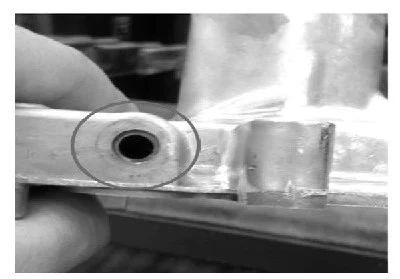 圖15 油道孔加工不過 數值模擬能為鋁合金壓鑄件的品質控制及缺陷改善提供良好的參考依據,縮短了開發時間;合理的排氣結構設計是改善鑄件內部品質的重要方法;合理的入料口設計不但是鑄件良好內部品質的重要保障,還是鑄件表面成形良好的重要依據;型芯針合理的加工余量能夠大大減少產品的加工不過,提高成品率;壓鑄機足夠的鎖模力可以減少飛邊毛刺的產生,是保證鑄件硬度要求的重要手段。