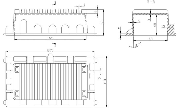 ![]() 原標(biāo)題:一種鋁合金殼體壓鑄模具設(shè)計(jì) 摘要 通過對殼體零件的結(jié)構(gòu)和成形性分析,重點(diǎn)對模具設(shè)計(jì)的主要環(huán)節(jié)進(jìn)行了詳細(xì)的分析與研究;分析設(shè)計(jì)了模具的分型面位置、澆注和排溢系統(tǒng)的結(jié)構(gòu)以及推出機(jī)構(gòu),采用在側(cè)面厚壁處多點(diǎn)澆口的結(jié)構(gòu)形式;對模具的型芯、型腔做了具體的結(jié)構(gòu)設(shè)計(jì),采用型腔在定模、型芯在動(dòng)模的普通兩板式結(jié)構(gòu)形式;并且型芯和型腔部分制作成活動(dòng)鑲件,便于修理、更換,模具結(jié)構(gòu)簡單、實(shí)用,完全滿足模具的設(shè)計(jì)要求。 鋁合金材料具有輕量化特點(diǎn),隨著鑄造成形工藝技術(shù)的不斷發(fā)展,鋁合金材料的壓鑄工藝與模具設(shè)計(jì)發(fā)展迅速。壓鑄模具的設(shè)計(jì)是壓鑄成形的重要環(huán)節(jié),對于整個(gè)加工過程的成本、效率以及成品精度等方面具有重要影響,因此,國內(nèi)外眾多學(xué)者對壓鑄模具進(jìn)行研究分析。馬冬威通過實(shí)驗(yàn)對比分析發(fā)現(xiàn),影響鋁合金式樣尺寸的主要因素是殘余應(yīng)力和固相結(jié)晶的變化;史寶良對汽車行業(yè)內(nèi)使用的結(jié)構(gòu)件典型部位進(jìn)行了相關(guān)分析,著重研究了高壓下鋁合金鑄件的性能特點(diǎn);Jin K C采用兩種幾何形狀設(shè)計(jì)了薄板壓鑄模具,并提出了一種基于數(shù)值模擬的新型溢流系統(tǒng),進(jìn)行了實(shí)際的真空壓鑄試驗(yàn)通道的部分無回流,使用所提出的優(yōu)化模具設(shè)計(jì)制造了一個(gè)高質(zhì)量的樣品;Péter Szalva通過比較高壓壓鑄和真空輔助壓鑄件的高周疲勞行為,并描述鑄件缺陷是如何影響疲勞失效的,真空輔助壓鑄顯著減小了孔隙尺寸和體積,減少了氧化薄片的發(fā)生,從而提高了失效循環(huán)次數(shù)。以上學(xué)者的研究均是針對壓鑄成形后產(chǎn)品件的微觀結(jié)構(gòu)以及鋁合金鑄件的結(jié)構(gòu)性能分析研究,而對于壓鑄模具的結(jié)構(gòu)設(shè)計(jì)及簡化尚未提及,因此,本研究的方向是針對一種鋁合金殼體壓鑄模具設(shè)計(jì),此次設(shè)計(jì)有效避免壓鑄過程所產(chǎn)生的冷隔、夾渣、氣泡、疏松、散熱片不成形等缺陷。 1、壓鑄件結(jié)構(gòu)及工藝性分析 圖1為殼體零件,采用鋁合金壓鑄成形。該鑄件結(jié)構(gòu)比較復(fù)雜,壁厚也不盡相同。殼體端面的壁厚為5 mm,側(cè)面四周壁厚為3 mm,其中一側(cè)的五個(gè)凸臺(tái)壁厚為15 mm 。背部有25個(gè)散熱片,比較密集,其細(xì)端寬度為1 mm,單邊斜度為1.5°,深度為9 mm。有四個(gè)加強(qiáng)筋的壁厚為5 mm,有六個(gè)加強(qiáng)筋的壁厚為1.5 mm。