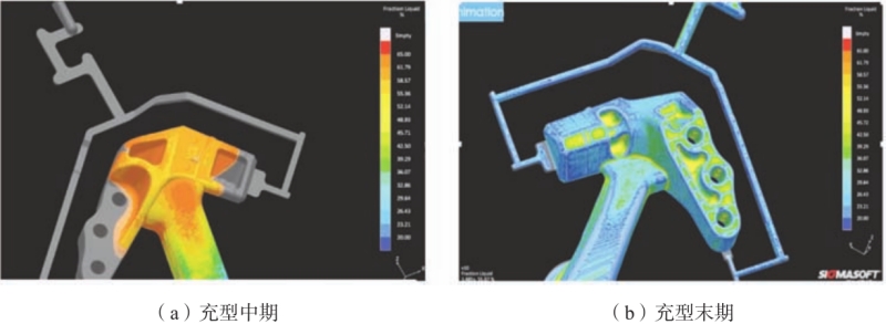 圖5 半固態支臂充型過程數值模擬結果