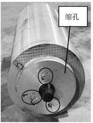 圖9 重力澆注工藝鑄件情況 3、結論 (1)該厚壁筒體鑄件采用重力鑄造工藝可以滿足鑄件技術要求。工藝設計澆注系統面積比∑S直澆道∶∑S橫澆道∶∑S內澆道=1:4:5,采用中注的澆注方式,鑄件頂冒口采用保溫冒口設計,鑄件底部設計厚度為鑄件壁厚1.2倍的隨形冷鐵。工藝出品率為55%。 (2)而采用低壓鑄造工藝澆注后鑄件存在縮孔、疏松等缺陷,不能滿足產品技術要求。主要原因為升液管直徑設計不足,升液管直徑以不低于260 mm為宜。工藝出品率僅為20%,綜合考慮,此工藝設計不適合此產品的試制。 作者