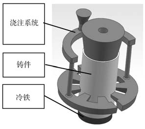 圖1 鑄件示意圖 1.1 澆注系統設計 采用基于FEM的Procast 2018軟件進行理論模擬,設計低壓鑄造工藝、重力澆注工藝對應的最理想澆注方案,并開展對應工藝的產品試制。