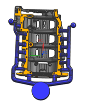 1. 模具設計方案 根據(jù)缸體群架的結構特點,為保證缸體群架周邊功能區(qū)局部壁厚較厚的部位的內部品質,鑄件采用U型澆注系統(tǒng),能夠快速填充鑄件并對兩側局部厚大處實施有效的補縮。缸體群架U型澆道見圖2。