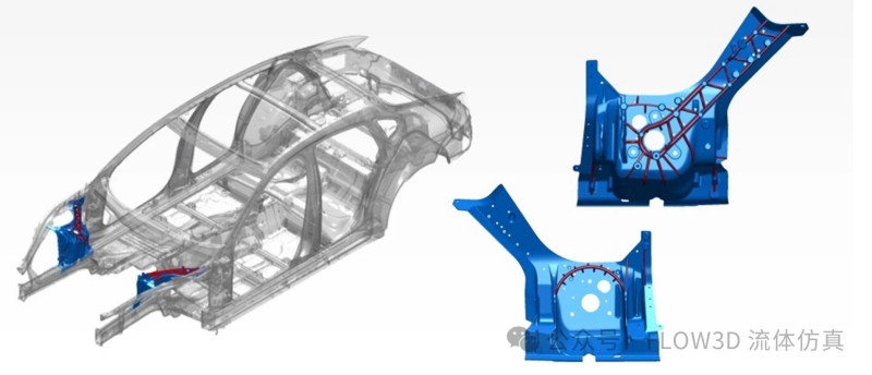 Porsche汽車應(yīng)用FLOW-3D優(yōu)化鑄件設(shè)計及工藝條件 一、前言 汽車產(chǎn)業(yè)正朝向于發(fā)展電動汽車、更安全、更舒適、更酷炫的外型、更高性能的車子,但因為這些因素可能使汽車的重量加重,造成更多溫室氣體的排放,對環(huán)境形成破壞,又因各國目前針對環(huán)境都有訂定相關(guān)法規(guī),讓汽車業(yè)者不得不思考要如何在輕量化的情況下完成上述的幾項發(fā)展,所以輕量化結(jié)構(gòu)是未來的關(guān)鍵技術(shù)。 Porsche汽車針對輕量化的技術(shù)提出了一體化鑄件的方式來改善汽車結(jié)構(gòu)與重量,其優(yōu)點上有高承重設(shè)計、高結(jié)構(gòu)強度、高集成潛力(降低成本)、近凈形生產(chǎn)(壓鑄)、及輕質(zhì)結(jié)構(gòu)的巨大潛力,但卻也須面臨其他衍生的挑戰(zhàn),如:鑄件以剛性為主會造成伸長率降低,不能在車輛直接碰撞區(qū)域使用、非常復(fù)雜的設(shè)計和開發(fā)過程及鑄造工藝參數(shù)的不確定性,故本文將研究針對在短時間內(nèi)開發(fā)復(fù)雜鑄件的方法進(jìn)行探討。