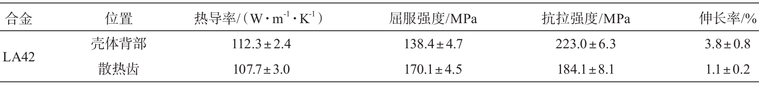 表3 LA42合金濾波器殼體不同部位熱導率和力學性能
