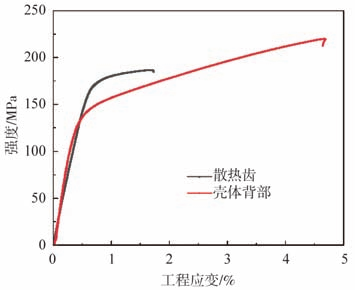 圖11 濾波器殼體不同部位LA42合金試樣拉伸曲線