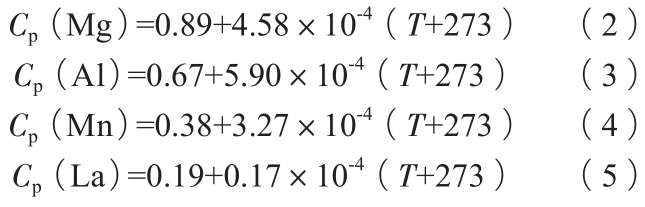 式中:Cp,i(T)為合金中各元素的定壓比熱容,xi為該元素在合金中的質量分數。