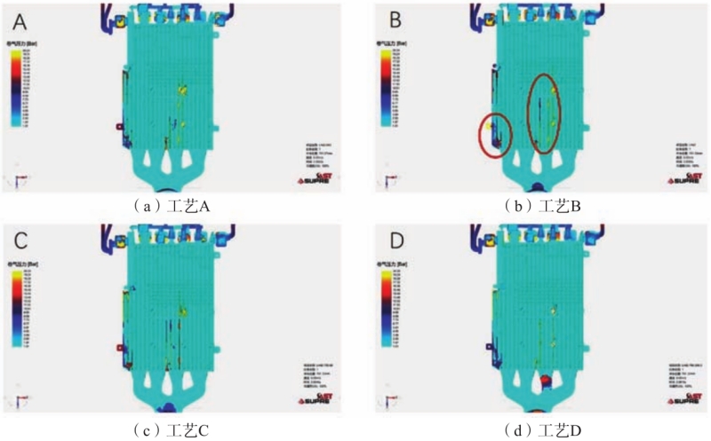 圖4 不同壓鑄工藝下的卷氣壓力數值模擬結果