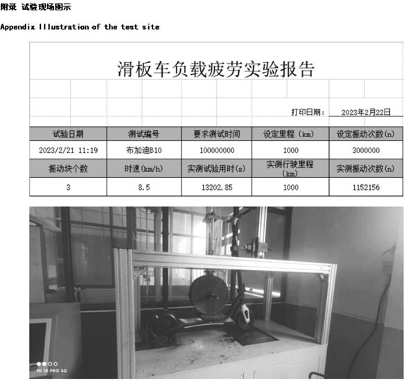 圖10 前叉裝配負(fù)載疲勞測(cè)試報(bào)告 4 結(jié)論 (1)基于智鑄超云—壓鑄CAE云計(jì)算平臺(tái),對(duì)不同壓射工藝方案進(jìn)行壓射過(guò)程的模擬分析,結(jié)果表明,采用高速位置3進(jìn)行壓射時(shí),合金液進(jìn)入型腔后,流動(dòng)平穩(wěn),由于高速位置前移到了零件型腔中,避免了在鑄件圓柱孔末端位置產(chǎn)生大的噴射流,從而可消除該處的卷氣現(xiàn)象。 (2)壓鑄生產(chǎn)工藝為鋁液澆注溫度為660 ℃,低速壓射采用勻加速壓射工藝,其最高臨界速度為0.57 m/s,高速速度為4 m/s,模具溫度控制在200 ℃左右,起高速在高速位置3,獲得了外形輪廓清晰、表面光滑、尺寸精度高、無(wú)缺陷的前叉壓鑄件。 (3)前叉壓鑄件鑄態(tài)的抗拉強(qiáng)度260 MPa,屈服強(qiáng)度169 MPa,伸長(zhǎng)率為2.2%;T6處理后抗拉強(qiáng)度提高到342 MPa,屈服強(qiáng)度為222 MPa,伸長(zhǎng)率為3.6%,滿足了電動(dòng)滑板車產(chǎn)品的前叉零件技術(shù)要求。 (4)前叉壓鑄件的密度達(dá)到2.739 g/cm³,孔隙率為0.39‰,壓鑄件的孔隙率遠(yuǎn)小于2%的壓鑄件標(biāo)準(zhǔn),同時(shí)也說(shuō)明壓鑄件的含氣量很低,實(shí)現(xiàn)了壓鑄件的低含氣量成形。