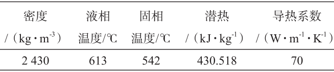 圖1 澆注系統(tǒng)三維模型 1.2 材料及工藝參數(shù)設(shè)置 制動(dòng)鉗材料為A356鋁合金,其熱物性參數(shù)如表1所示。模具采用H13鋼。制動(dòng)鉗壁厚不均勻,采用金屬型重力鑄造成形時(shí),為避免鉗體薄壁部分過早凝固而使后續(xù)難以補(bǔ)縮,造成冷隔和澆不足等鑄造缺陷,應(yīng)適當(dāng)提高澆注溫度和模具預(yù)熱溫度,故設(shè)置初始澆注溫 度為740 ℃,模具預(yù)熱溫度為340 ℃。同時(shí)設(shè)置初始澆注時(shí)間為22 s。設(shè)定金屬液與模具之間的傳熱系數(shù)為2 000 W/(㎡·K),模具間的傳熱系數(shù)為3 500 W/(㎡·K),為便于制動(dòng)鉗鑄件活塞孔等部位的成形,在模具內(nèi)放置有砂芯,設(shè)定砂芯與金屬液、模具與砂芯之間的傳熱系數(shù)分別為1 000 W/(㎡·K)和300 W/(㎡·K),初始冷卻方式為室溫20 ℃自然冷卻。