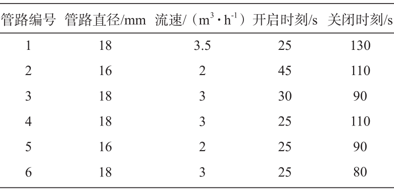 圖2 鑄件凝固過程中的固相率變化 2優(yōu)化分析 2.1 冷卻優(yōu)化 通過對(duì)原始工藝方案數(shù)值模擬結(jié)果凝固過程中固相率的分析,鑄件在凝固過程中出現(xiàn)了孤立液相區(qū),不能實(shí)現(xiàn)順序凝固,因此需要對(duì)鉗體兩側(cè)活塞孔所在厚壁處的孤立液相區(qū)強(qiáng)化冷卻,加快該部位的凝固速度從而改善凝固溫度梯度,使其能夠順序凝固。圖3是強(qiáng)化的冷卻系統(tǒng),冷卻管路的直徑和流量根據(jù)縮松縮孔缺陷的體積大小進(jìn)行設(shè)置,各管路的開閉時(shí)間結(jié)合凝固過程中的溫度和固相率變化確定,初始冷卻水溫度為25 ℃,表2是具體的初始冷卻方案參數(shù)。在實(shí)際生產(chǎn)中,模具的水冷卻系統(tǒng)是通過內(nèi)外部管道連接形成閉合回路結(jié)構(gòu),其中冷卻系統(tǒng)設(shè)備的控制采用單獨(dú)的水路控制閥和流量控制閥,使每個(gè)冷卻水通道的冷卻水流速可以通過調(diào)節(jié)閥和流量計(jì)精確地調(diào)節(jié)和顯示,從而實(shí)現(xiàn)冷卻水的流速大小和開關(guān)閉時(shí)刻的控制。冷卻水溫度則可通過比例閥調(diào)節(jié)混合冷水與冷卻回水,以達(dá)到要求的溫度。