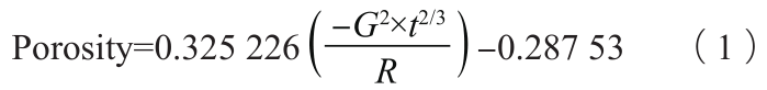表3 正交試驗(yàn)的因素和水平 本文以縮松縮孔缺陷和二次枝晶間距作為對(duì)鑄件質(zhì)量的評(píng)價(jià)指標(biāo)。縮松縮孔缺陷是制動(dòng)鉗鑄件主要的內(nèi)部缺陷,其直接影響鑄件的力學(xué)性能和疲勞壽命。本文縮松縮孔缺陷的評(píng)判值是在考慮局部溫度梯度和冷卻速度的基礎(chǔ)上,引入局部凝固時(shí)間的適用于預(yù)測(cè)鋁合金鑄件中的縮松縮孔缺陷的判據(jù)式: