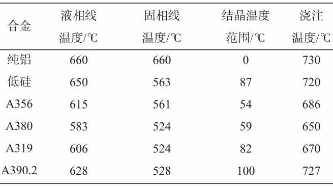 2.2 壓鑄條件下合金的流動性和固相線溫度的關系