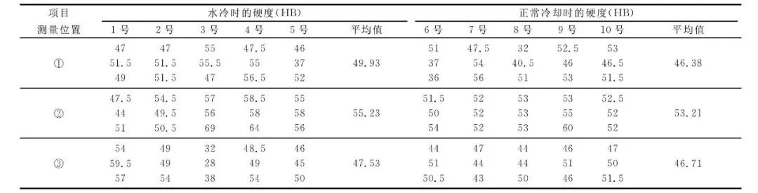 表2 壓鑄件水冷與正常冷卻時(shí)的硬度對(duì)比