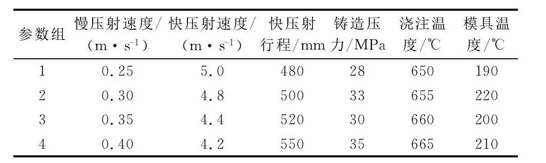 表1 壓鑄工藝參數(shù)選擇