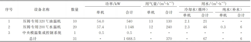 圖2 廣東鴻圖160 000 kN壓鑄機(jī) 表1 模溫控制系統(tǒng)的配置