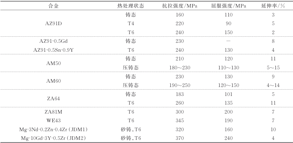 表4 常用鑄造鎂合金常溫力學性能